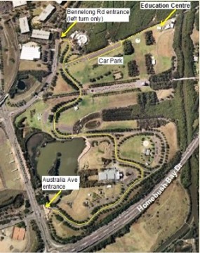Enter from Australia Ave at the Bicentennial Park entrance and drive through the park (one way road). Turn off to the right if entering from main entrance.